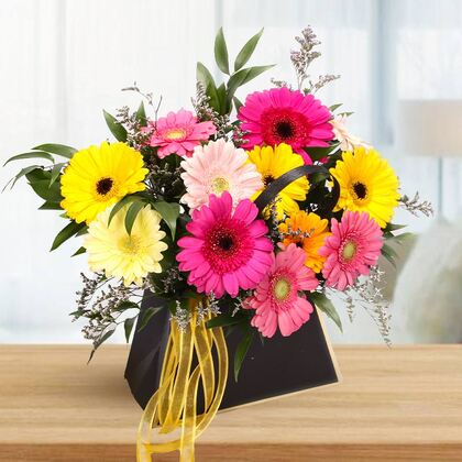 Sending smiles just got a whole lot brighter! Bursting with cheerful gerberas in every shade of happy, this flower purse is like carrying sunshine, laughter, and a little bit of magic all at once. Whether you’re surprising a friend, celebrating someone special, or just reminding them how fabulous they are, this colorful purse of blooms delivers pure joy in the prettiest way. It’s not just flowers, it’s happiness, gift-wrapped and on its way to brighten their day!