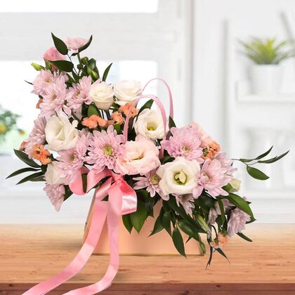 Soft, sweet, and full of charm, this flower purse is like a gentle hug made of blooms. Delicate pinks and creamy whites come together in a dreamy mix that whispers elegance while still making the heart skip a beat. Perfect for showing love, celebrating milestones, or simply sending a thoughtful surprise, it carries beauty and tenderness in every petal. When words aren’t quite enough, this purse of pink perfection says it all with grace and warmth.