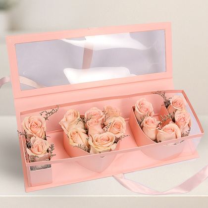 Say “I love you” in the most unforgettable way. This elegant flower box features soft pink roses meticulously arranged to form the iconic “I ♥ U.” Encased in a sophisticated box with a clear lid, this striking display turns a classic message of love into a breathtaking gift. Perfect for anniversaries, proposals, or any occasion where love deserves to take center stage.