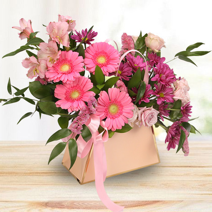 Bring a touch of style and sweetness with this purse-shaped arrangement bursting with vibrant pink gerberas, playful blooms, and lush greenery. Designed for anyone who loves pink, fashion, and fun surprises, it’s the perfect pick for a Sweet 16, a stylish birthday, or a friend who can’t resist a chic detail. More than flowers, it’s a fashion-inspired gift that turns heads and brightens hearts the moment it arrives.