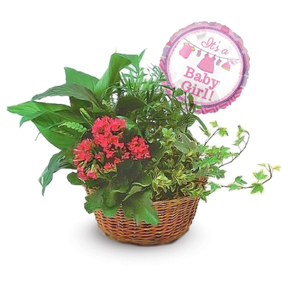 Order your Welcome New Baby Girl Blooming Dish Garden plant online here: